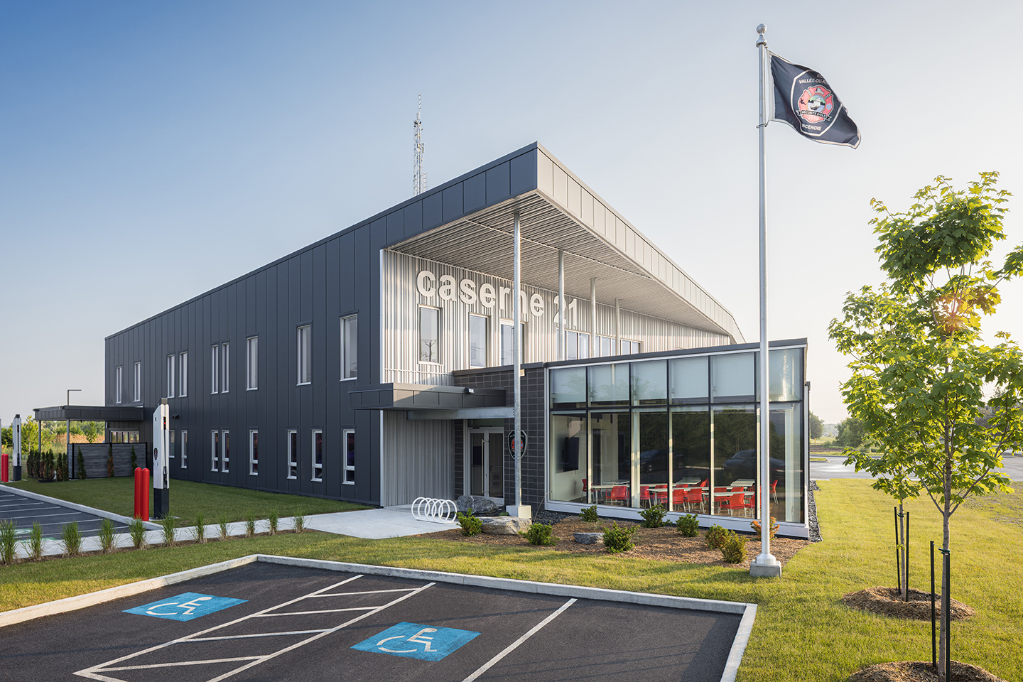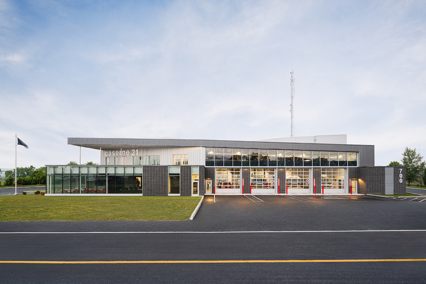 La caserne 21 de la Régie intermunicipale de sécurité incendie de la Vallée‑du‑Richelieu s’implante à Beloeil, le long du boulevard Yvon‑L’Heureux Nord, à un point d’équilibre entre six municipalités de la Montérégie. Issue d’un investissement intermunicipal, elle rassemble les moyens de la région dans un équipement unique, capable d’améliorer les temps de réponse tout en affirmant discrètement la présence d’une infrastructure civique contemporaine dans un paysage en mutation.